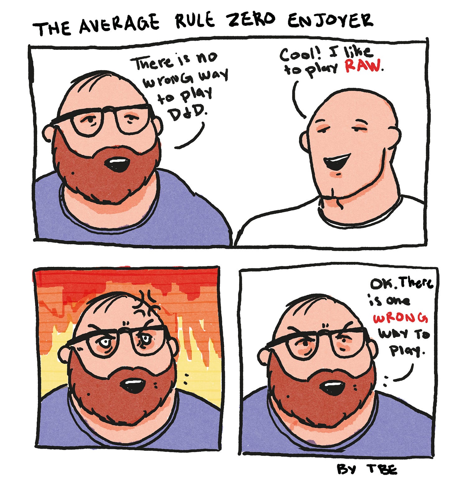Me: I don't believe that there is no wrong way to play. I think there are right ways to play and wrong ways to play. If there is no wrong way to play, why did I pay $60 for a book? Why do I write RPG books?